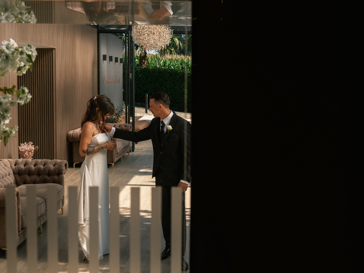Fotografia documental de casamento de Vanessa e Marcos, captando momentos genuínos, emoções verdadeiras e detalhes que eternizam a história do casal. Uma reportagem com foco na naturalidade, luz suave e conexão entre noivos, convidados e ambiente.