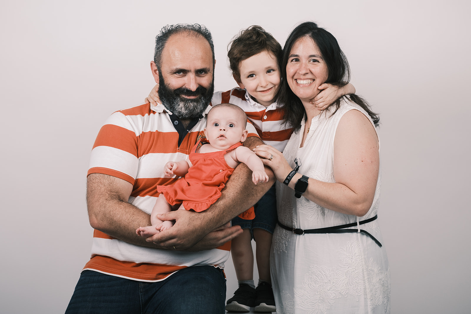 Se preferirem um registo luminoso, fotografo em fundo branco com tons claros. Gorros e camisolas de Natal são bem-vindos quando usados com moderação: um detalhe que dá alegria sem roubar a cena.